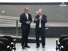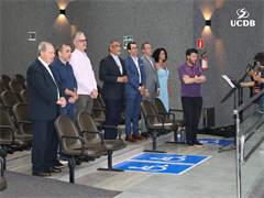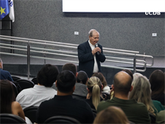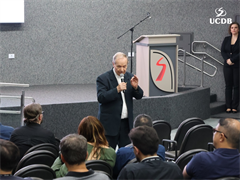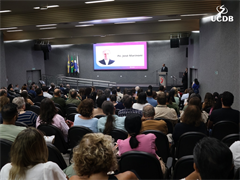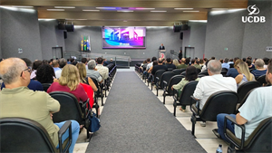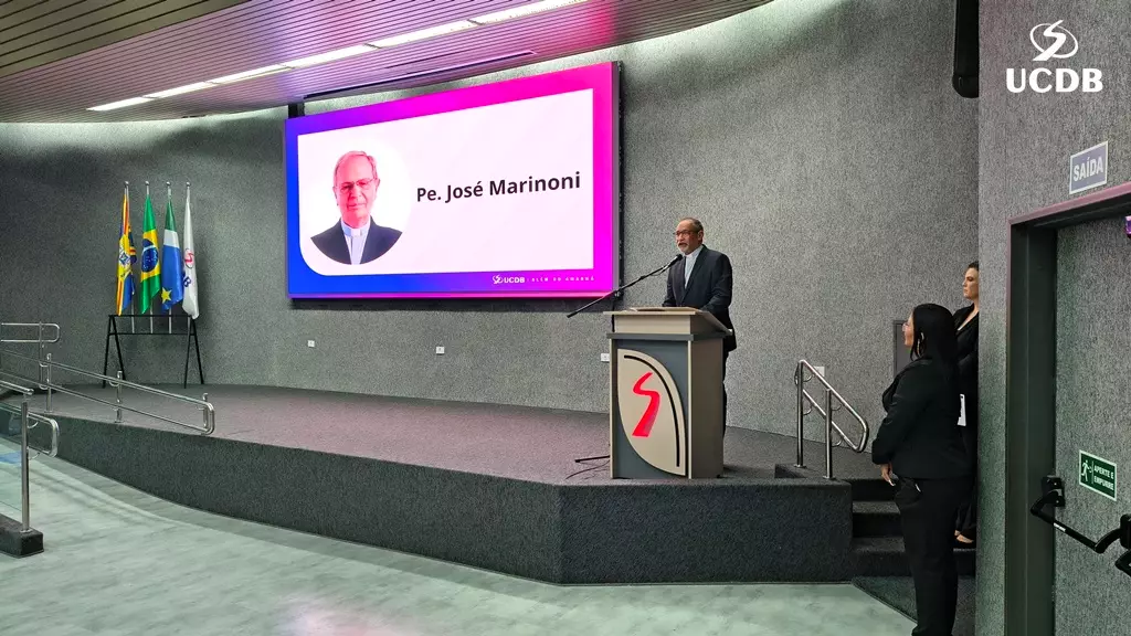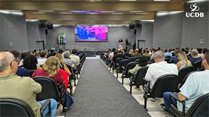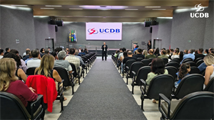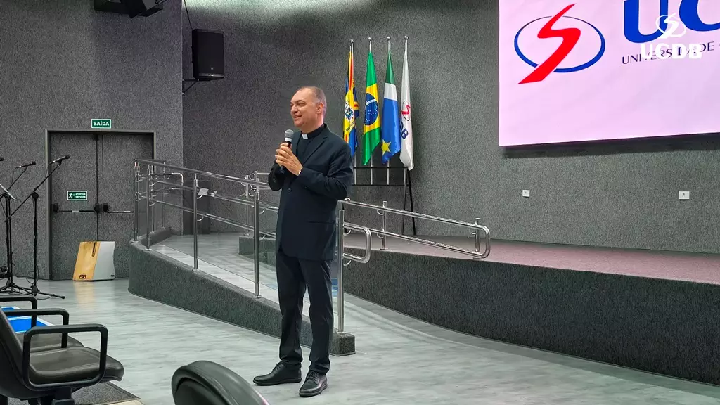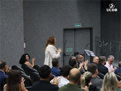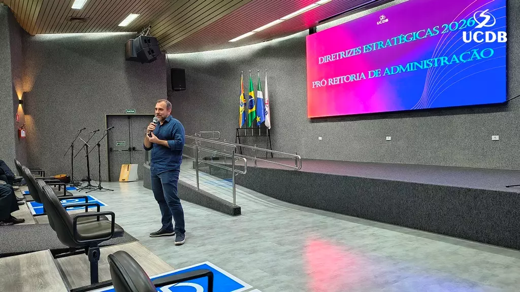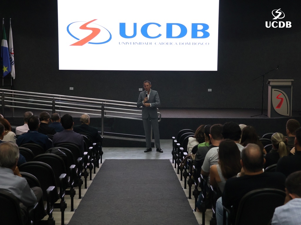 Em seu momento de apresentação, o Pró-Reitor de Administração, Taner Bitencourt, falou das diretrizes estratégicas de 2026, alicerçadas em experiência, infraestrutura e qualidade, além da salesianidade, inovação e tecnologia. O gestor apresentou as obras que realizadas em 2025 e adiantou melhorias que serão feitas ao longo de 2026. “Uma novidade é a parceria com o Operário SAF, que pode trazer muitas novidades para os nossos alunos, além de um calendário de experiências já definido, que inclui a Acolhida, Dia do Estudante, colações de grau, vestibular presencial e muitas outras ações que tornam a UCDB esse País que nos orgulha tanto”.