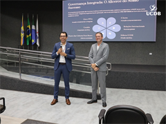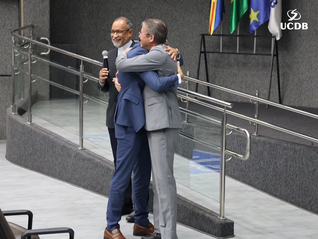 Professor Michel Constantino tomou posse como novo Pró-Reitor de Pesquisa e Pós-graduação e garantiu a continuidade dos projetos exitosos da UCDB. “Foram 10 anos muito importantes sob a liderança do saudoso professor Hemerson Pistori e mais 8 anos com a consolidação com o Cristiano. Vamos honrar esse legado. Gosto de trabalhar com as portas abertas para todos vocês. Obrigada pela confiança”.