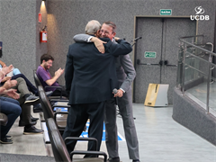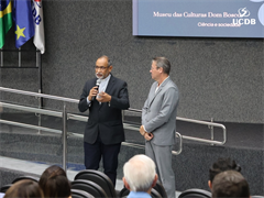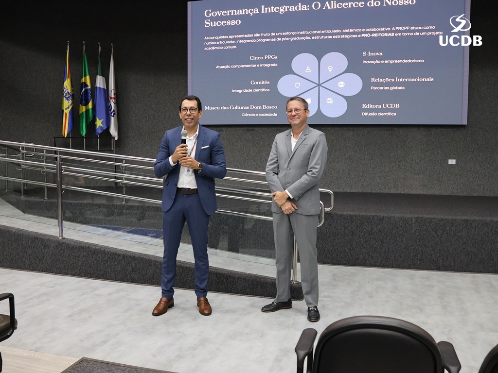 Despedindo-se do cargo de Pró-Reitor, professor Cristiano Marcelo Espínola Carvalho agradeceu ao apoio ao longo dos oito anos liderando a pesquisa da UCDB e fez um balanço do que foi feito no período. “Alcançamos a excelência científica, sendo reconhecidos mundialmente. Os indicadores comprovam a relevância da Católica em citações, publicações em revistas de altíssimo nível, parcerias estratégicas, internacionalização, captação de recursos e impacto social”. O destaque foi a última avaliação da Capes, que reconheceu com nota 7 — o único de Mato Grosso do Sul — o Programa de Mestrado e Doutorado em Desenvolvimento Local, e com nota 6 os programas em Educação e em Biotecnologia.