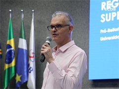 O Pró-Reitor de Graduação e Extensão, Cleber Fagundes Ramos, apresentou as mudanças trazidas com o novo marco regulatório do ensino superior, que provocou uma reconfiguração na área. Ele destacou os princípios norteadores do Decreto 12.456/2025 e as novas diretrizes de avaliação dos cursos. “Todo esse processo de mudança é válido para todas as instituições de ensino superior, com um determinado prazo. No entanto, sai na frente quem já se adapta a elas e nós já iniciamos essas implementações”, afirmou.
