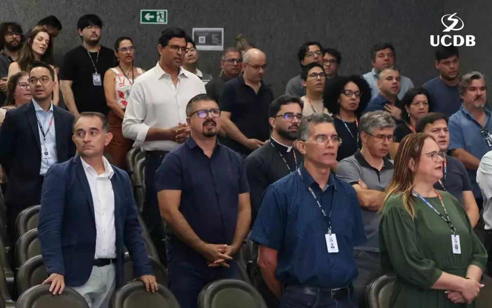 O Reitor da Universidade Católica Dom Bosco (UCDB), Pe. Hermenegildo Conceição Silva teve o primeiro contato oficial com o corpo docente na noite de ontem (26), durante a Acolhida Docente 2026A. Os professores conheceram, também, o novo Pró-Reitor de Pastoral e Assuntos Comunitários, Pe. Elias Roberto, e o Pró-Reitor de Pesquisa e Pós-graduação, Dr. Michel Ângelo Constantino de Oliveira.