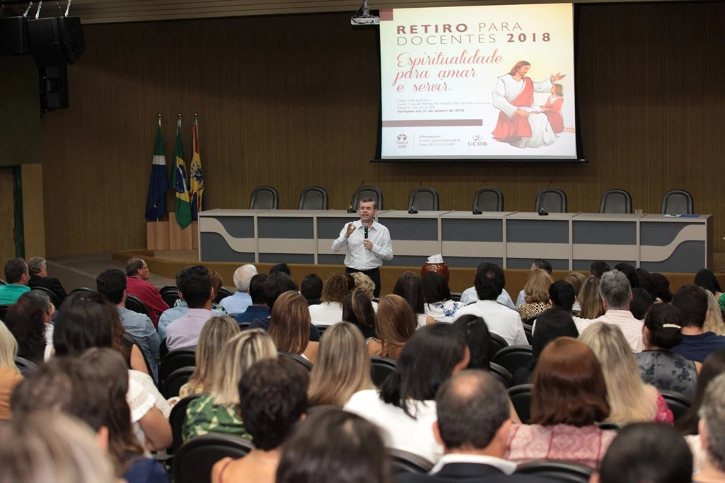 Na noite desta quinta-feira (25), o anfiteatro do bloco A foi palco para a Acolhida Docente. Os professores da Universidade Católica Dom Bosco (UCDB) reuniram-se para mais um momento de aperfeiçoamento e preparação para o início do ano letivo.