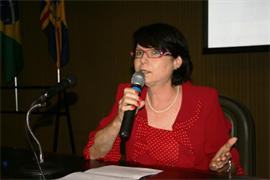 Em seguida, a professora Dra. Mariluce Bittar, do Programa de Pós-Graduação – Mestrado e Doutorado em Educação, da UCDB, discorreu sobre o tema “Educação Superior no Brasil: Desafios das Universidades Comunitárias no Âmbito da Política de Avaliação”. A docente, que contabiliza 24 anos de UCDB, começou a palestra agradecendo o convite. “Uma honra muito grande ocupar esse espaço junto com meus colegas de trabalho”. A professora também ressaltou o porquê da escolha do tema. “Nota-se que não há a percepção do que se trata, por isso definimos essa temática”.