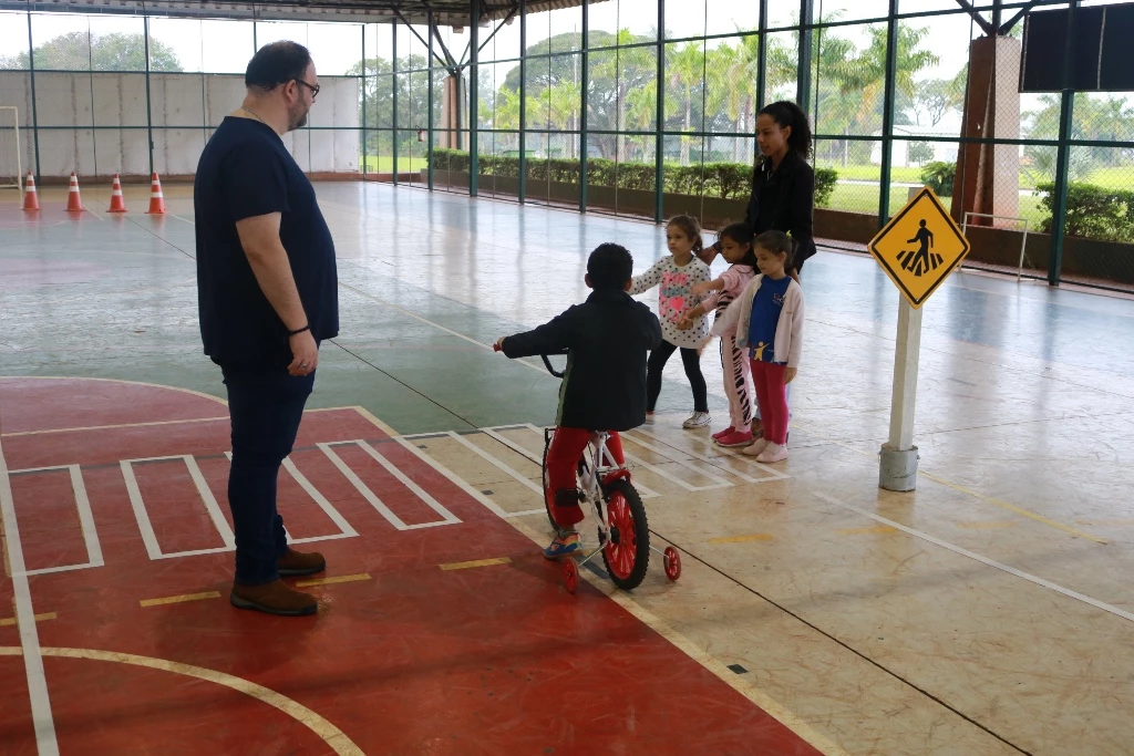 Cerca de 40 alunos participaram, e enquanto se divertiam com as bicicletas, recebiam as orientações. “É importante trazer essa oportunidade para as crianças já começarem desde pequenas a terem essa vivência das regras de trânsito, a entender como ele funciona, a necessidade da segurança para atravessar a rua e dos comportamentos adequados que eles precisam ter nesse ambiente de risco que é o trânsito”, destacou o psicólogo da Agetran, Renan da Cunha Soares Junior.