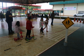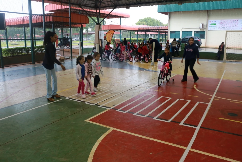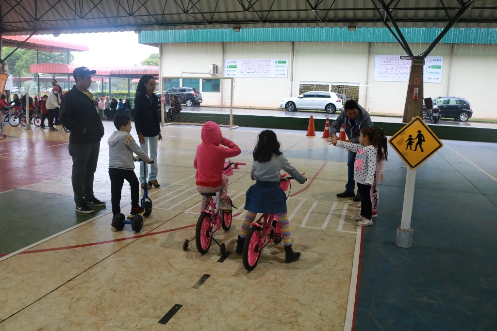 Em uma pista mirim especialmente montada nas quadras cobertas da Católica, com sinalização de travessia de pedestres e de proibido estacionar, os alunos puderam percorrer de bicicletas e patinetes,e outros fizeram o papel de pedestres. “É importante conscientizar a criança, pois ela também será uma futura motorista. A gente trabalha com eles sobre as regras de trânsito e depois eles reforçam em casa com os pais”, destaca a coordenadora pedagógica da Escola Salesiana São Domingos Sávio UCDB, professora Franciele Pavão Garcia.