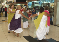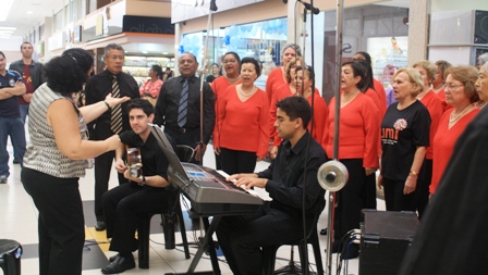 Com dança e canto, os acadêmicos surpreenderam as pessoas que faziam compra no local e paravam suas atividades para assistir as apresentações. A celebração teve a presença da Pró-Reitora de Extensão e Assuntos Comunitários, professora Dra. Luciane Pinho e da coordenadora da UMI, Leiner Maura, que assistiram de perto a dança, coreografada por Marcelo Picoli, e ao coral, regido pela maestrina Edna Palmeira.