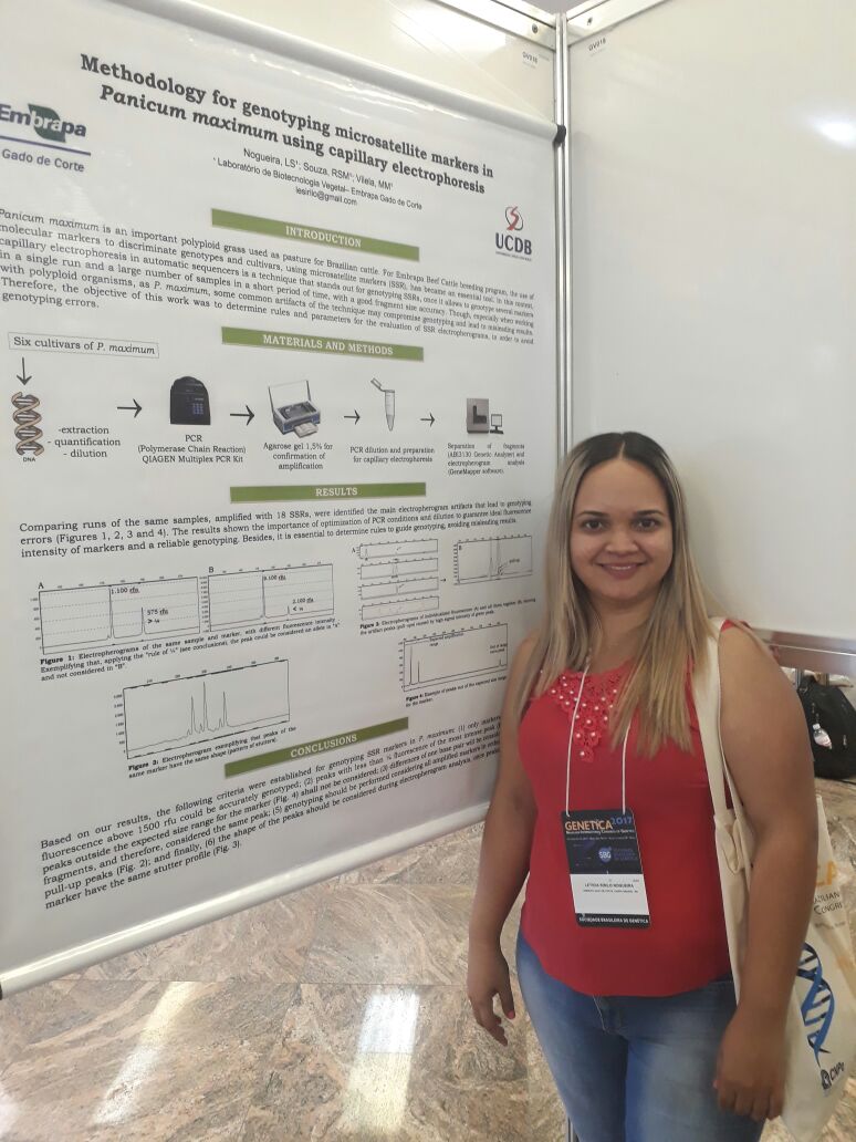 No mês de setembro, durante o Congresso Internacional de Genética realizado em Águas de Lindóia (SP), as acadêmicas Letícia Sirilo, Renata Souza e Mariane Vilela apresentaram o trabalho “Methodology for genotyping microsatellite markers in panicum maximum using capillary electrophoresis” (Traduzido: Metologia para genotipagem de marcadores de microssatélites em Panicum máximo usando eletroforese capilar).