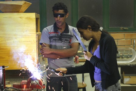 Os estudantes também tiveram a oportunidade de manusear o equipamento de soldagem, além de aprenderam normas básicas de segurança durante o uso correto do equipamento.