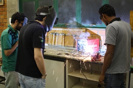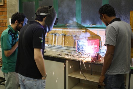 Durante a aula da disciplina de Materiais e Processo de Fabricação, os acadêmicos puderam conhecer melhor as técnicas de soldagem e quais as melhores formas de se trabalhar com o metal, adequando medidas, tipo e qualidade do material usado conforme a proposta do projeto.
