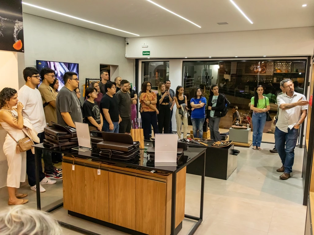 Acadêmicos do 1º e do 3º semestre de Gastronomia realizaram visita técnica à loja Imperial Land, na última semana. Eles foram recebidos pelo mestre cuteleiro e CEO da Imperial Cutelaria, Alexandre Barbosa. O grupo estava acompanhado dos professores Fábio Salviano e Milena Wolff Ferreira, que ministram as disciplinas Cozinha Contemporânea e Ciência dos Alimentos, respectivamente.
