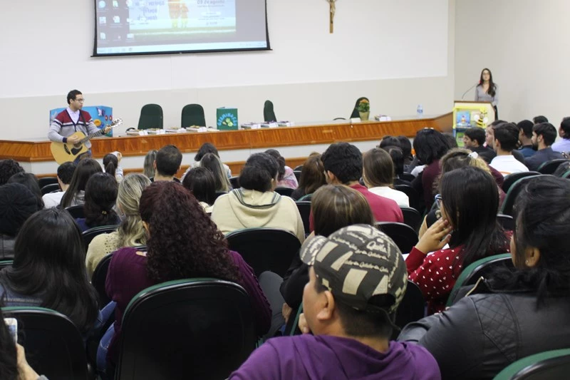 Os acadêmicos dos cursos de Letras e Pedagogia da Universidade Católica Dom Bosco (UCDB) foram recepcionados para o início do segundo semestre de 2018 com uma Acolhida realizada na terça-feira (07). Com o tema central voltado para a discussão da linguagem e da educação, o evento trouxe a palestra do Dr. Victor Hugo de Oliveira que abordou “Universidade: o espaço e o conhecimento”.