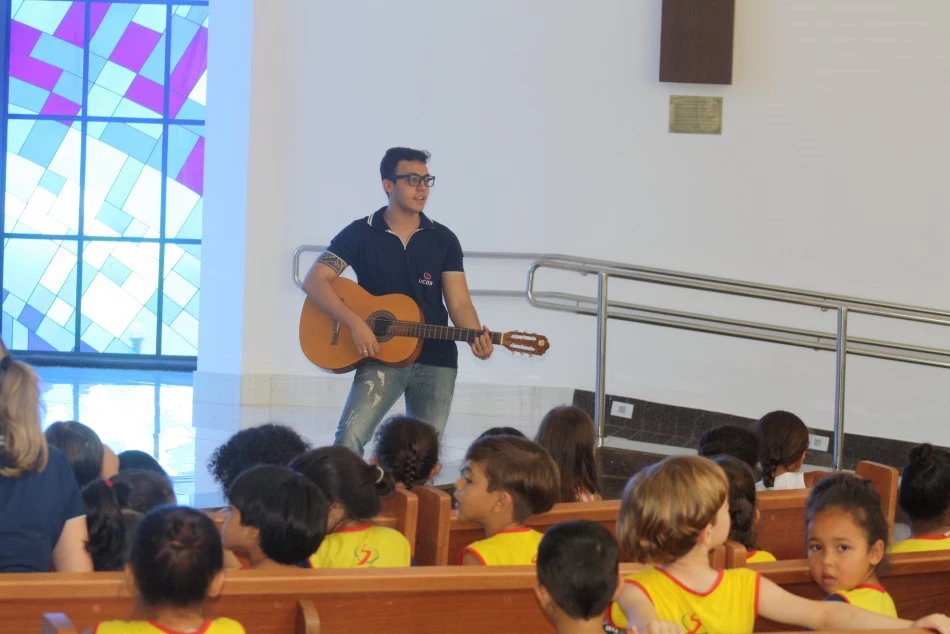 O Centro de Educação Infantil (CEI) São Domingos Sávio, da Universidade Católica Dom Bosco (UCDB), realizou, na quinta-feira (19), uma visita em grupo das crianças dos Níveis 1, 2 e 3 à Igreja São João Bosco, localizada no campus da Universidade. A ideia foi de apresentar a igreja de forma descontraída às crianças, envolvendo a música.