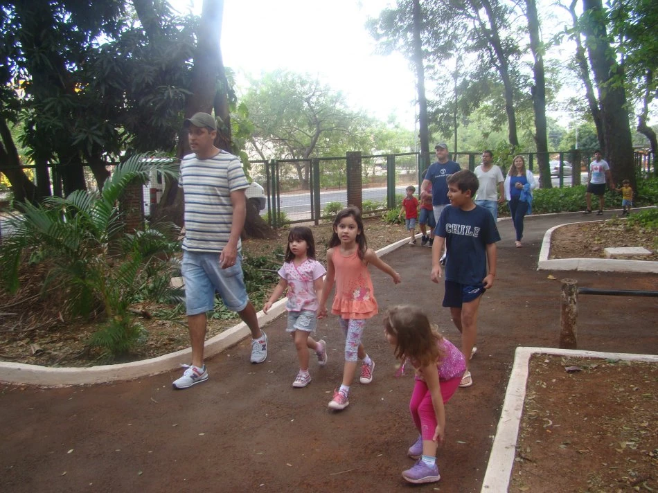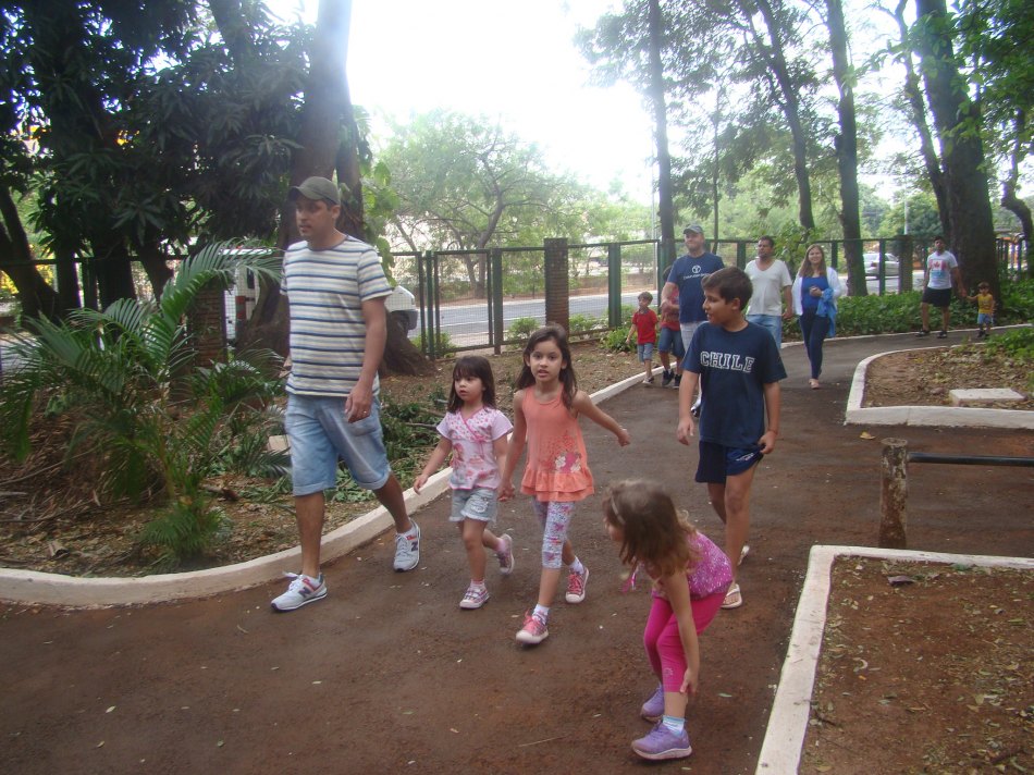 Os estudantes do CEI, pais, amigos e familiares fizeram alongamento, com auxílio dos acadêmicos do 8° semestre de Enfermagem, e em seguida caminharam pela pista do parque. Encerrado a manhã de confraternizações, todos sentaram-se no gramado do parque para um piquenique.