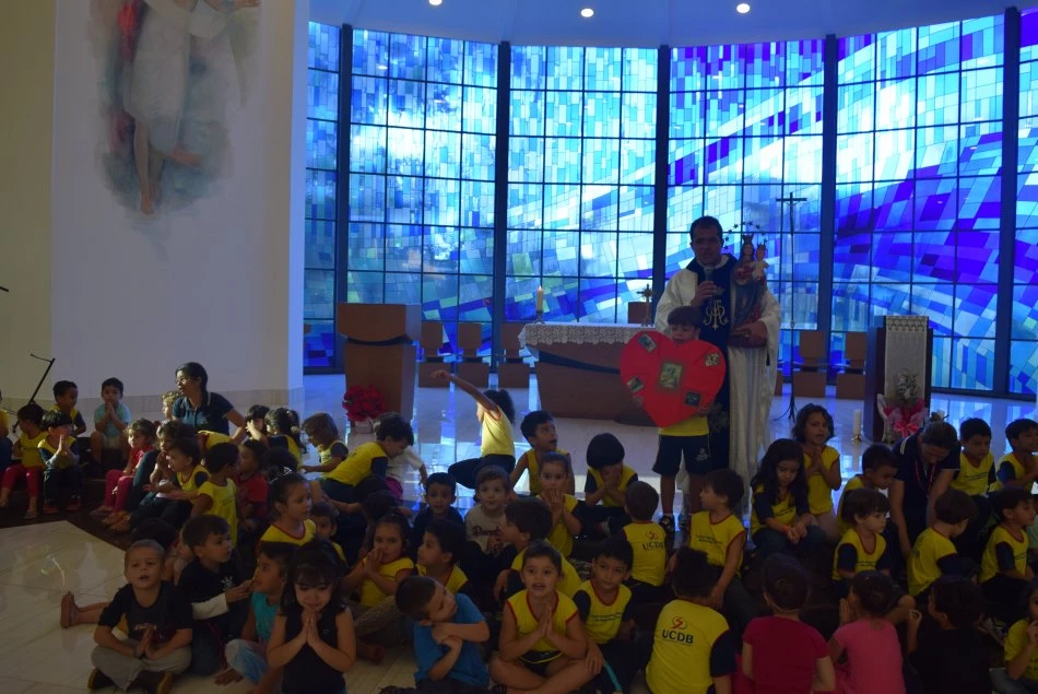 Os alunos do Centro de Educação Infantil (CEI) da Universidade Católica Dom Bosco (UCDB) participaram na sexta-feira (20) da celebração de Nossa Senhora Auxiliadora, presidida pelo Pe. João Victor Ortiz, na Igreja São João Bosco.