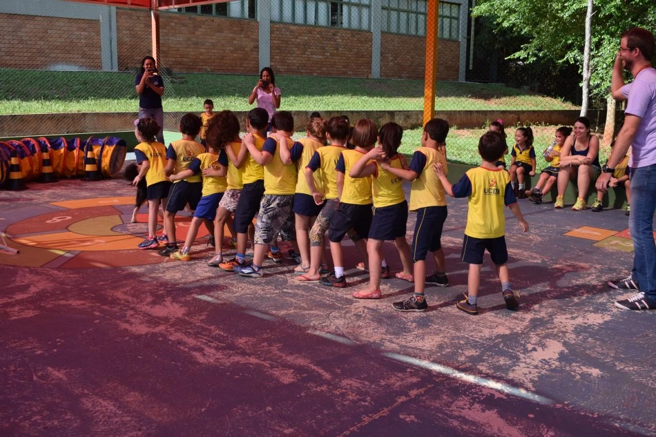 Já no período da tarde, alunos dos Maternais e Níveis I, II e III estiveram com a professora Me. Claudia Diniz de Moraes e com acadêmicos realizando atividades de Educação Física, nas quadras da Católica.