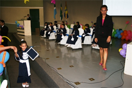 Apenas um passo, o primeiro para seguir em frente, ao futuro. Essa é a imagem que crianças de cincos anos, alunos do Centro de Educação Infantil São Domingos Sávio (CEI), da Universidade Católica Dom Bosco (UCDB), deixaram na formatura da turma do Nível III, a última da Educação Infantil. E com essa imagem que pais, familiares e amigos, emocionados, acompanharam os formandos nesse evento, realizado na última quarta-feira, no anfiteatro Dom Aquino, bloco B da Católica.