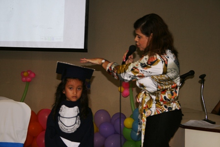 Na colação de grau, as agitadas crianças tiveram direito a fotos, aplausos e buzinas ao entrar no auditório, canto do Hino Nacional, oração e entrega de canudos de formatura. Elas receberam de professores e outros colaboradores do CEI os certificados de conclusão do Nível III. A Pró-Reitora de Extensão e Assuntos Comunitários da UCDB, professora Dra. Luciane Pinho de Almeida, também esteve presente na cerimônia, participando da entrega dos certificados.