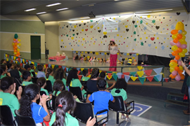Espetáculo de circo organizado pelos acadêmicos de Educação Física e Pedagogia que participam do Programa Institucional de Bolsa de Iniciação à Docência (PIBID), realizado especialmente para os alunos do ensino fundamental da Escola Estadual Antônio Delfino Pereira, da comunidade Tia Eva, aconteceu na última sexta-feira (9), no anfiteatro do bloco B na Universidade Católica Dom Bosco (UCDB). A atividade contou com a parceria da Viação São Francisco, que forneceu o ônibus para o transporte das crianças.