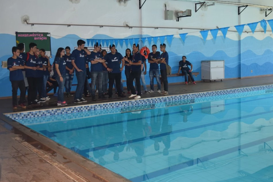 Os alunos visitaram o Ginásio Didático Esportivo, um lugar exclusivo para acadêmicos de Educação Física, onde se encontra a piscina aquecida com teto solar, área de ginástica artística, sala de musculação e ginástica, e também visitaram as três quadras externas cobertas.