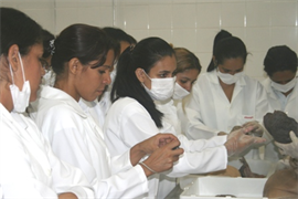 Nanoite de ontem(9), a Universidade Católica Dom Bosco (UCDB) recebeu a visita dos alunos do 1º ano do Curso Técnico em Enfermagem, do Serviço Nacional de Aprendizagem Comercial (Senac). Acompanhados da professora do Senac, Quezia Rees, os estudantes conheceram as dependências do laboratórios de Biossaúde e tiveram a primeira aula prática.