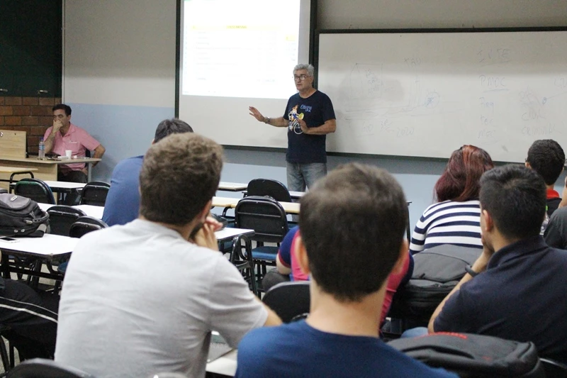 Na noite dessa quarta-feira (2), acadêmicos do 10º semestre dos cursos de Engenharia de Controle e Automação, de Engenharia Mecânica e de Engenharia Elétrica participaram de uma palestra com o presidente da Federação Nacional de Engenharia Mecânica e Industrial (Fenemi), Marco Aurélio Candia Braga. A atividade fez parte da disciplina “Ética profissional”, ministrada pelo professor Dr. Mauro Conti Pereira.