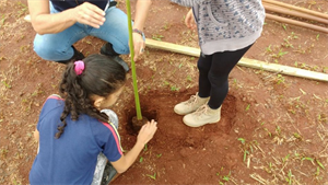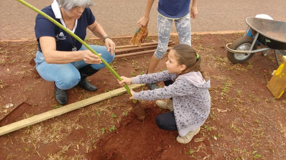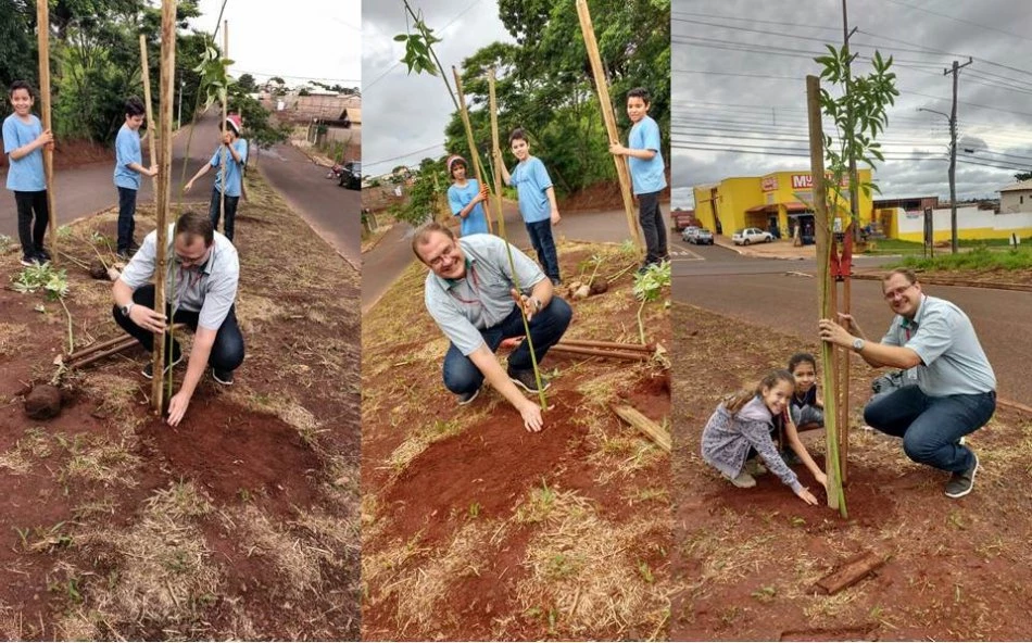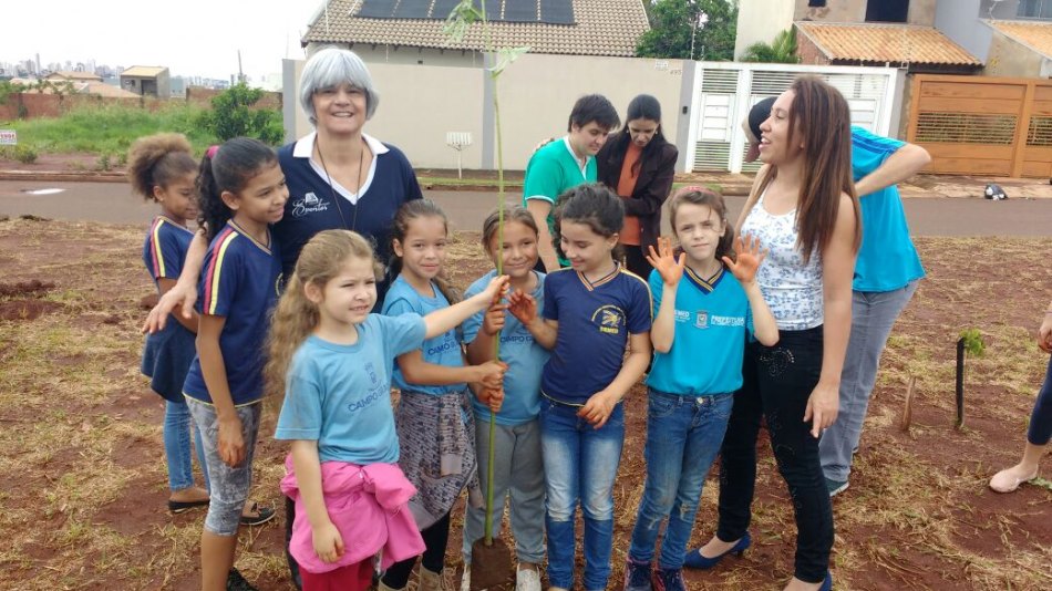 Acadêmicos de Agronomia da Universidade Católica Dom Bosco (UCDB), integrantes do projeto de extensão Horta Escola, e 40 alunos da Escola Municipal Professor Licurgo de Oliveira Bastos, fizeram nesta manhã (28), o plantio de aproximadamente 50 mudas da espécie “paineira-rosa”, no canteiro da Avenida Onélia Zaprolli Testa com a Avenida Tamandaré, em Campo Grande. O projeto é coordenado pelo professor Dr. Lucas de Castro Torres.