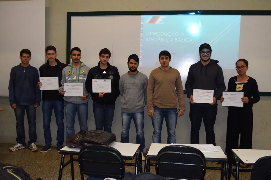 Vinte alunos de Ensino Médio e cinco do primeiro semestre dos cursos de Engenharia da Universidade Católica Dom Bosco (UCDB) receberam na quarta-feira (8) o certificado de participação do curso de Introdução à Mecânica Automotiva, oferecido pelo projeto de extensão Fórmula Universitária.