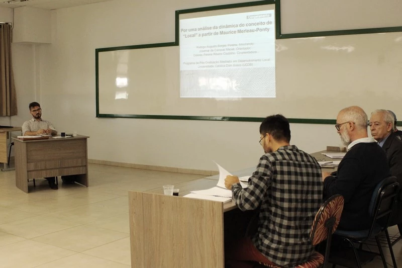 Rodrigo Augusto Borges Pereira, mestrando do Programa de Pós-Graduação Stricto Sensu em Desenvolvimento Local da Universidade Católica Dom Bosco (UCDB), defendeu a dissertação desenvolvida durante o curso na tarde desta quarta-feira (27). Sob orientação do professor Dr. Josemar de Campos Maciel, o estudo feito pelo discente teve o seguinte tema: “Por uma análise da dinâmica do conceito de “Local” a partir de Maurice Merleau-Ponty”.