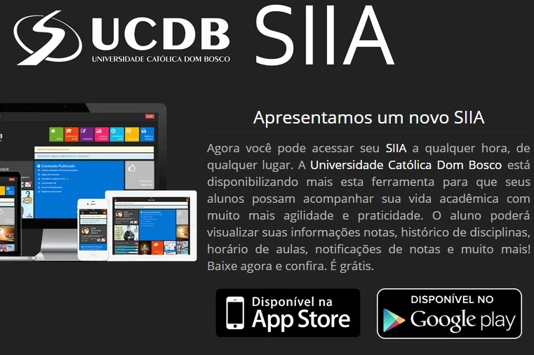 Acadêmicos da Universidade Católica Dom Bosco podem conferir as notas do fim do semestre por meio do aplicativo do Sistema Integrado de Informações Acadêmicas (SIIA) para smartphones e tablets. Quem ainda não baixou o app pode acessar o Google Play ou App Store, no link.