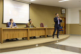 Mediando a conversa, o coordenador da pós-graduação em Psicologia da Comunicação da Católica, professor Thiago Müller, ressaltou a importância do tema que atrai profissionais de diversas áreas. “A Psicologia e a comunicação são dois instrumentos que todo mundo trabalha e o comum a elas é o ser humano. Então, é uma pós que tenta promover aos alunos a reflexão sobre quem é esse humano contemporâneo, porque assim a gente fica longe de decorar técnicas, levando para uma perspectiva muito mais atuante e crítica”.