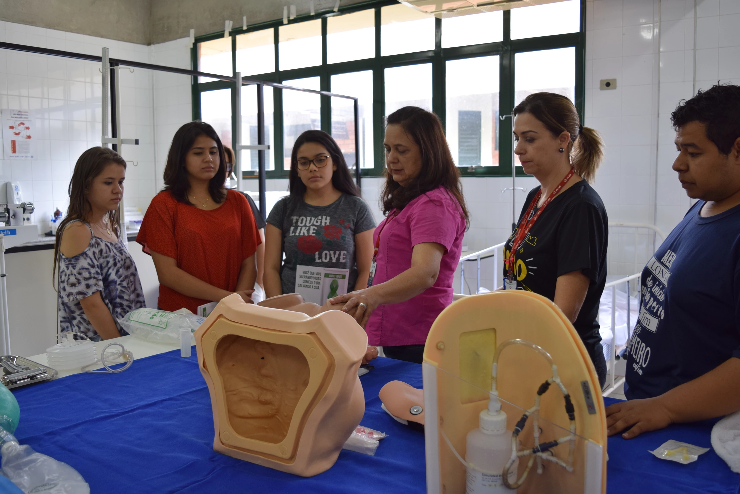 Docentes do curso de Enfermagem da Universidade Católica Dom Bosco (UCDB) ministram aula experimental para os aprovados pelo processo seletivo oferecido a estudantes do 3º ano do ensino médio e de cursinhos pré-vestibulares, o Desafio UCDB.