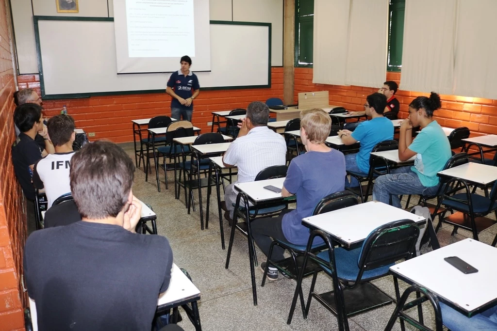 Por fim, os alunos tiveram a oportunidade de esclarecer dúvidas com professores e um dos alunos participantes do projeto Fórmula Universitária, que contou sobre as experiências que vem adquirindo durante o período da graduação.