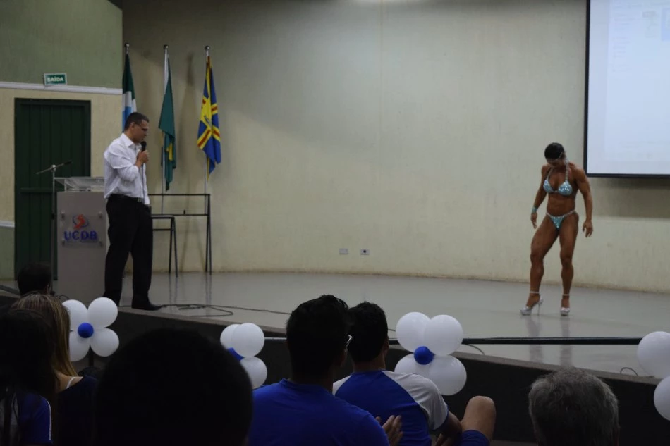 Acadêmicos prestigiaram apresentação de fisiculturismo com a atleta Edna Oshiro, durante o segundo dia (1º de dezembro) da Mostra de Conclusão de Curso de Educação Física da Universidade Católica Dom Bosco (UCDB). O evento tem o encerramento hoje (2), no período matutino, no bloco B.