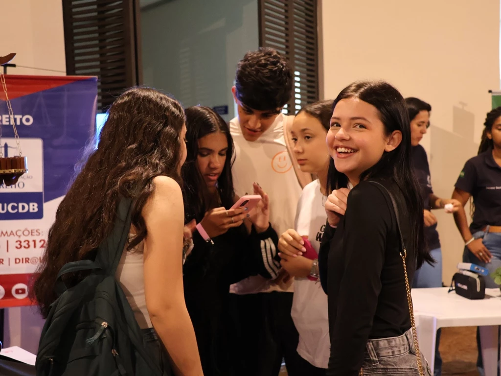 Os participantes do Aulão do Enem puderam conhecer mais sobre os cursos de Psicologia, Medicina Veterinária, Agronomia, Direito e Odontologia da UCDB. Também puderam retirar picolés e pipoca antes do início do evento.