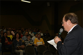 Na última quinta-feira, os docentes reiniciaram os trabalhos participando da Acolhida. No evento, o Reitor da Universidade Católica Dom Bosco (UCDB), Pe. José Marinoni, destacou três palavras: discernir, escutar e agir. Segundo ele, as três atitudes devem ser aplicadas no trabalho dos professores da Instituição. O Reitor também lembrou das manifestações ocorridas em junho e da importância de ouvir os jovens. “Aproveitem os momentos com os acadêmicos, escutem o que eles têm para dizer; pelo menos uma vez por semana, passe o intervalo ao lado deles”, recomendou.