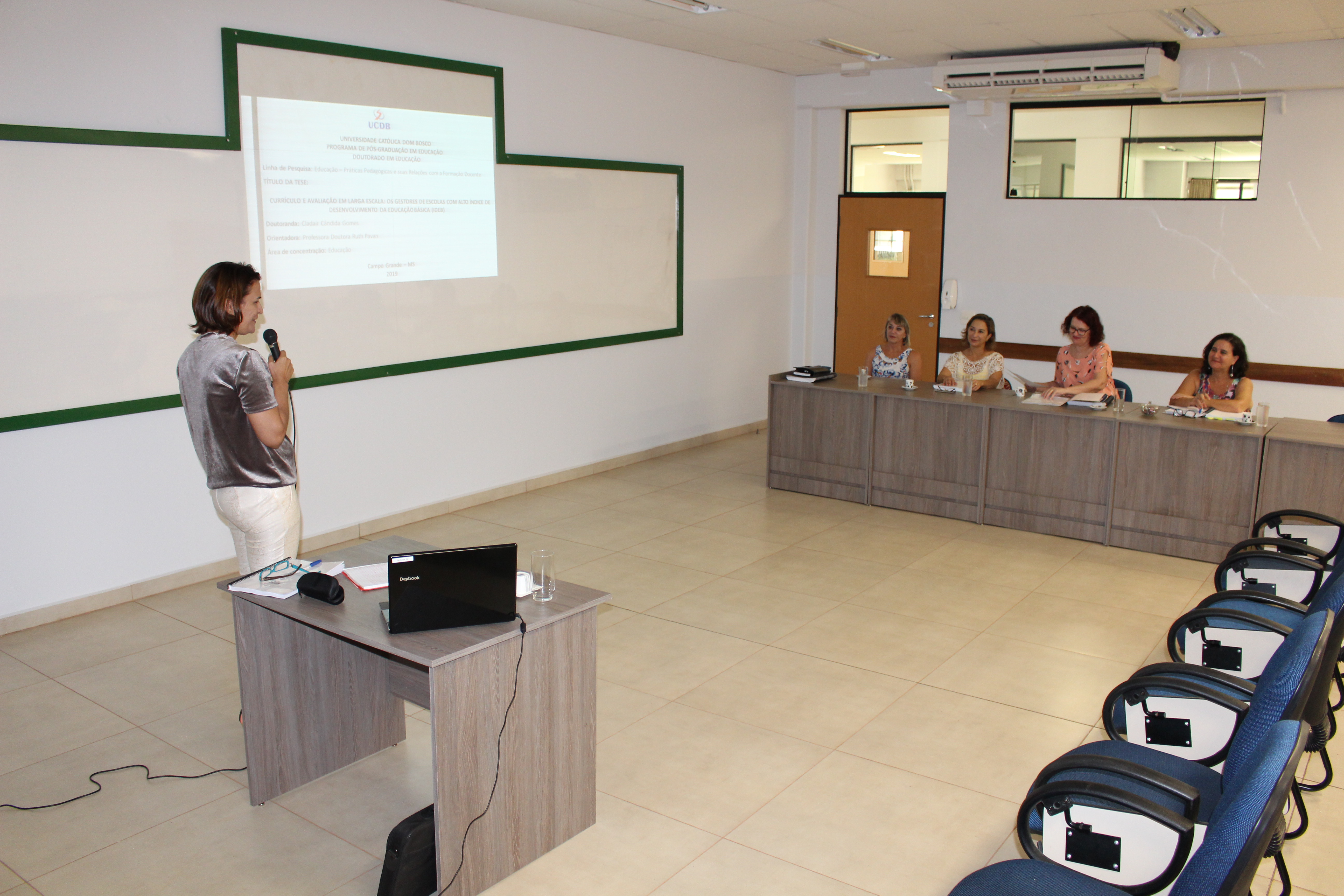 O Programa de Pós-Graduação em Educação Mestrado e Doutorado da Universidade Católica Dom Bosco (UCDB) realizou na segunda-feira (25) a banca de defesa da tese da doutoranda Cladair Cândida Gomes, com o tema “Currículo e avaliação em larga escala: Os gestores de escola com alto índice de desenvolvimento da educação básica (Ideb).