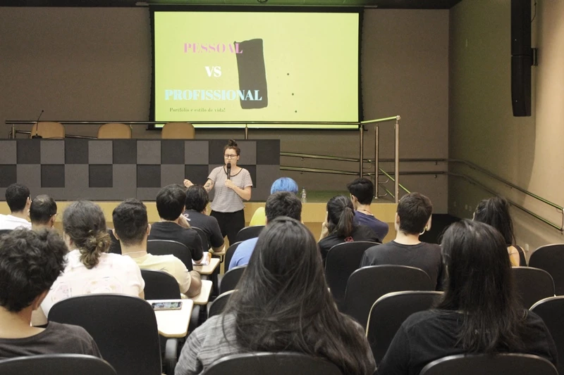 Marina Tonon, egressa do curso de Design da Universidade Católica Dom Bosco (UCDB), foi a profissional convidada para conversar com os acadêmicos da área neste mês. No auditório do bloco M do campus Tamandaré, Marina que atua como diretora de criação e arte, designer especializada em lettering e social mídia, falou sobre o mercado de trabalho em São Paulo, onde reside atualmente. Além disso, expôs alguns trabalhos já realizados e ensinou aos alunos como criar um portfólio.