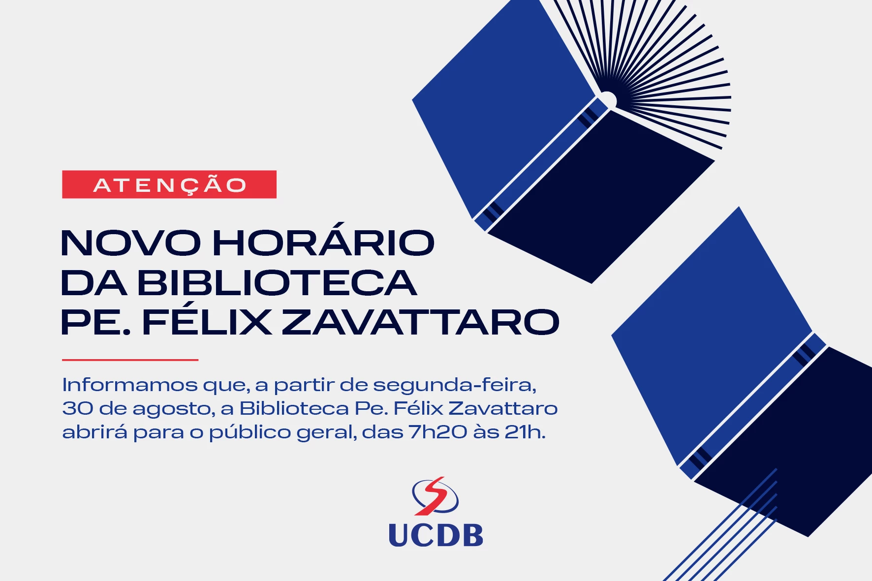 A Biblioteca Pe. Félix Zavattaro, da Universidade Católica Dom Bosco, estende o horário de atendimento ao público, das 7h20 às 21 horas, de segunda a sexta-feira. É possível realizar consultas, empréstimos e devoluções de livros.
