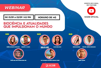 A Universidade Católica Dom Bosco (UCDB) inicia nesta quarta-feira (1º), com transmissão pelo Youtube oficial da Católica, a webinar ‘Biociência e atualidades que impulsionam o mundo’. As palestras vão até a próxima sexta-feira (3).