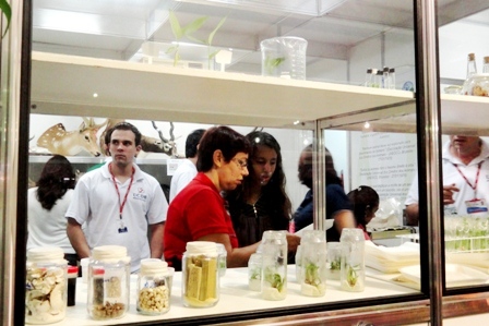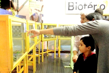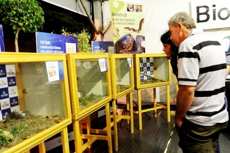 Os acadêmicos do curso de Biologia da Universidade Católica Dom Bosco (UCDB), que participam do Biotério, expõem animais taxidermizados, serpentes, jabutis, jacaré e lagarto na maior feira agropecuária do Mato Grosso do Sul, a Expogrande.