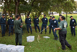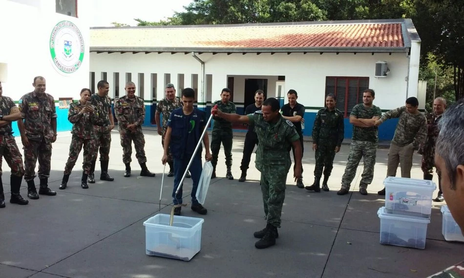 Biotério da Universidade Católica Dom Bosco (UCDB) recebeu na tarde de segunda-feira (22), cerca de 40 policiais do Batalhão de Choque de Campo Grande para um treinamento de manejo de serpentes. O objetivo do curso é que os policiais saibam fazer adequadamente a captura desses animais e a prevenção de acidentes ofídicos.