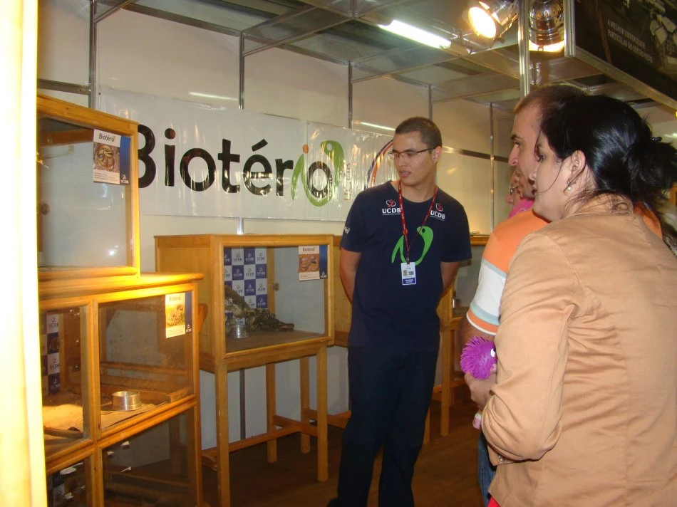 Recebendo olhares atentos e curiosos do público da Expogrande, o Biotério da Universidade Católica Dom Bosco (UCDB) desperta o interesse dos visitantes, que podem conhecer sobre a educação ambiental, a identificação dos animais e a importância de cada um em seu ecossistema.