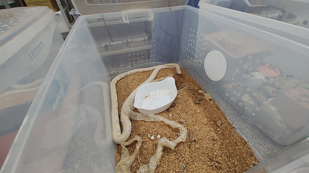 Pela segunda semana consecutiva, o Biotério da Universidade Católica Dom Bosco (UCDB) recebe animais exóticos oriundos da apreensão feita pela Polícia Civil e da Polícia Militar Ambiental (PMA). No início da tarde desta sexta-feira (21), foram entregues ao Biotério UCDB duas cobras Lampropeltis californiae, mais conhecidas como cobra rei californiana, e um lagarto Gecko.