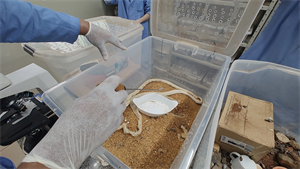 Segundo a professora, as cobras estavam em péssimas condições sanitárias e o lagarto comprometido nutricionalmente, já que foram encontrados em caixas sem a menor condição de higiene. A equipe de biólogos e médicos veterinários do Biotério UCDB irá fazer uma avaliação clínica e laboratorial nos animais e também raio-x para verificar a presença de chip de registro.