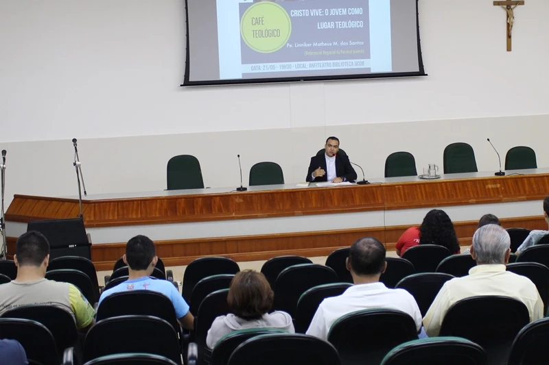 No anfiteatro da Biblioteca Pe. Félix Zavattaro, os acadêmicos do curso de Teologia participaram, nesta terça-feira (21), do “Café Teológico”. Com o tema “Cristo Vive: o jovem como lugar teológico”, o evento trouxe como palestrante o Pe. Linniker Matheus Magalhães dos Santos, que atua na Pastoral Juvenil em Campo Grande.