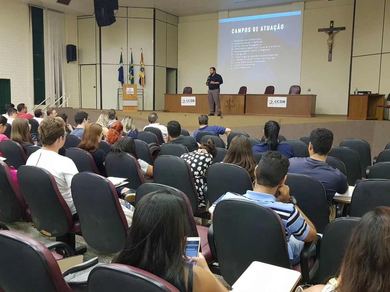 Na data, além da apresentação dos professores, foram passadas orientações a respeito da vida acadêmica como o regimento interno da UCDB. Para falar com os alunos sobre a profissão e também a respeito do funcionamento do Conselho de Arquitetura e Urbanismo de Mato Grosso do Sul (CAU/MS), o presidente da entidade, Luís Eduardo Costa, esteve presente e ministrou uma palestra.