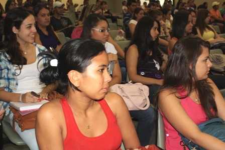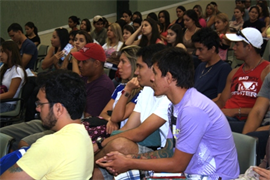 Durante a palestra, ela falou sobre a importância da doação de sangue e de medula óssea, explicando como funciona o cadastramento no banco de doadores, seleção de doadores e as formas de se extrair o material para doação, além de esclarecer as dúvidas dos acadêmicos que perguntavam sobre o assunto.