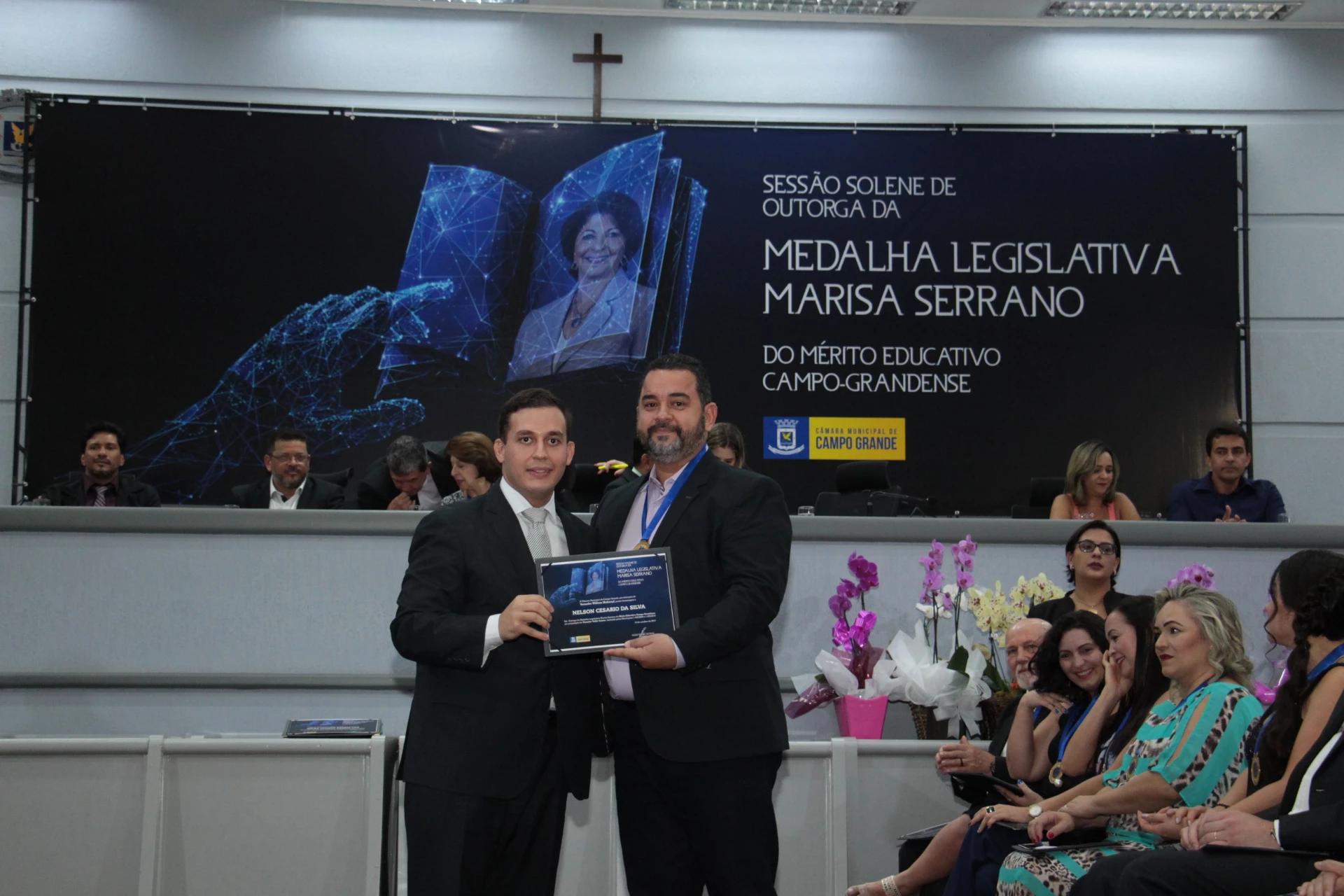 A sessão solene foi realizada em alusão ao Dia do Professor (15 de outubro). Anualmente, cada parlamentar indica dois profissionais da educação básica ou do ensino superior para receber a condecoração. O Legislativo municipal também indica profissionais para a homenagem, como foi o caso do professor Raphael Chaia, que é vice-coordenador do curso de Direito da UCDB. O docente é graduado pela UCDB e doutorando em Desenvolvimento Local.