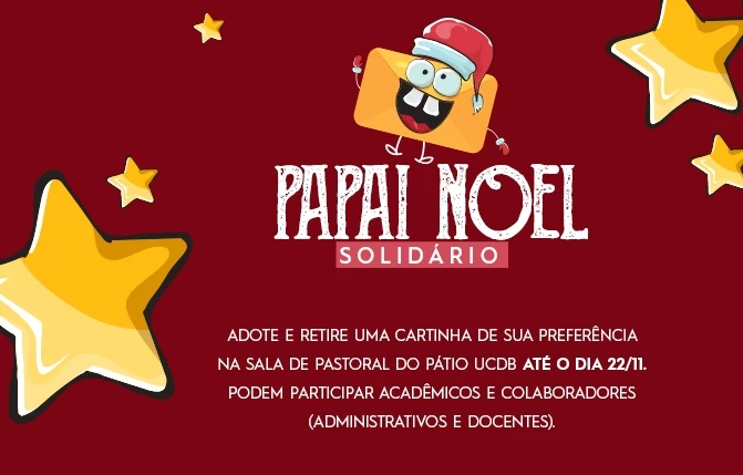 O projeto Universidade do Natal já está acontecendo nas dependências da Universidade Católica Dom Bosco, na qual acadêmicos, colaboradores docentes e administrativos podem contribuir com as ações de solidariedade adotando uma cartinha na campanha Papai Noel solidário, atendendo ao pedido de uma criança.
