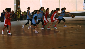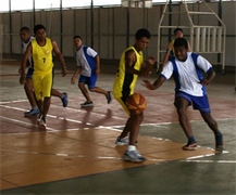 O campeonato acontece em duas etapas. Na manhã de hoje será a disputa de Futsal nas categorias A e B. A categoria B são os alunos que estão começando a jogar agora e na categoria A são os estudantes que já jogam a bastante tempo, são os representantes da escola. Ontem, foi a disputa do basquetebol masculino e feminino.
